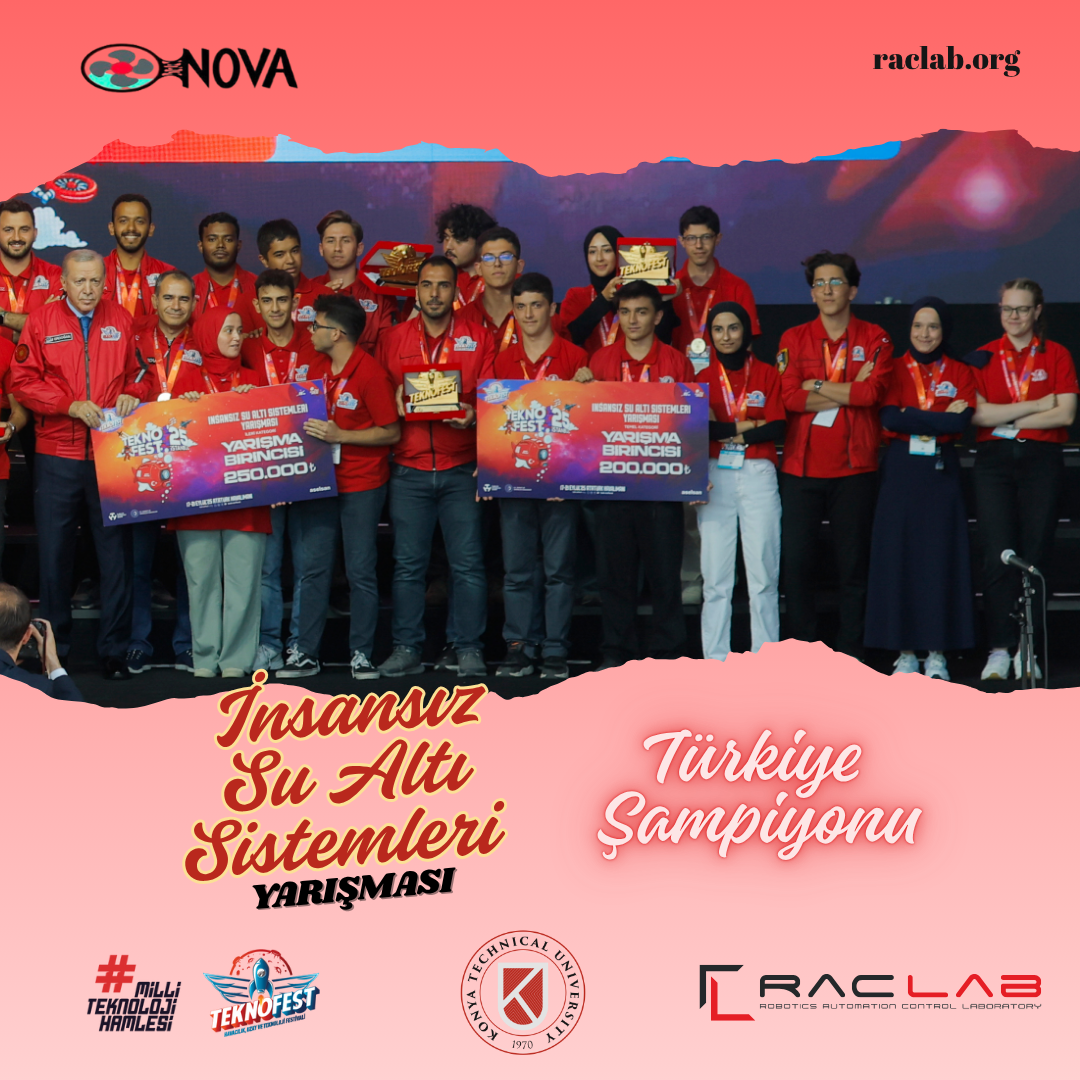 Teknofest 2025 İnsansız Su Altı Sistemleri yarışmasında RACLAB NOVA (Hatice Kübra İLHAN (Takım Kaptanı), Abdurrahman İnce, Beyza Nur YAĞCI, Feyza İnal, Furkan ERANIL, Gizem Ülker, Mevlüt Burak Dağlı, Mustafa Bedir Sarıtosun, Feyza Baltürk ve Ahmet Selim İlhan) takımımız, TEKNOFEST 2025 İnsansız Su Altı Sistemleri Yarışması’nda zirvede 🏆. Üstelik “En İyi Takım Ruhu” ödülü de bizim! 💪