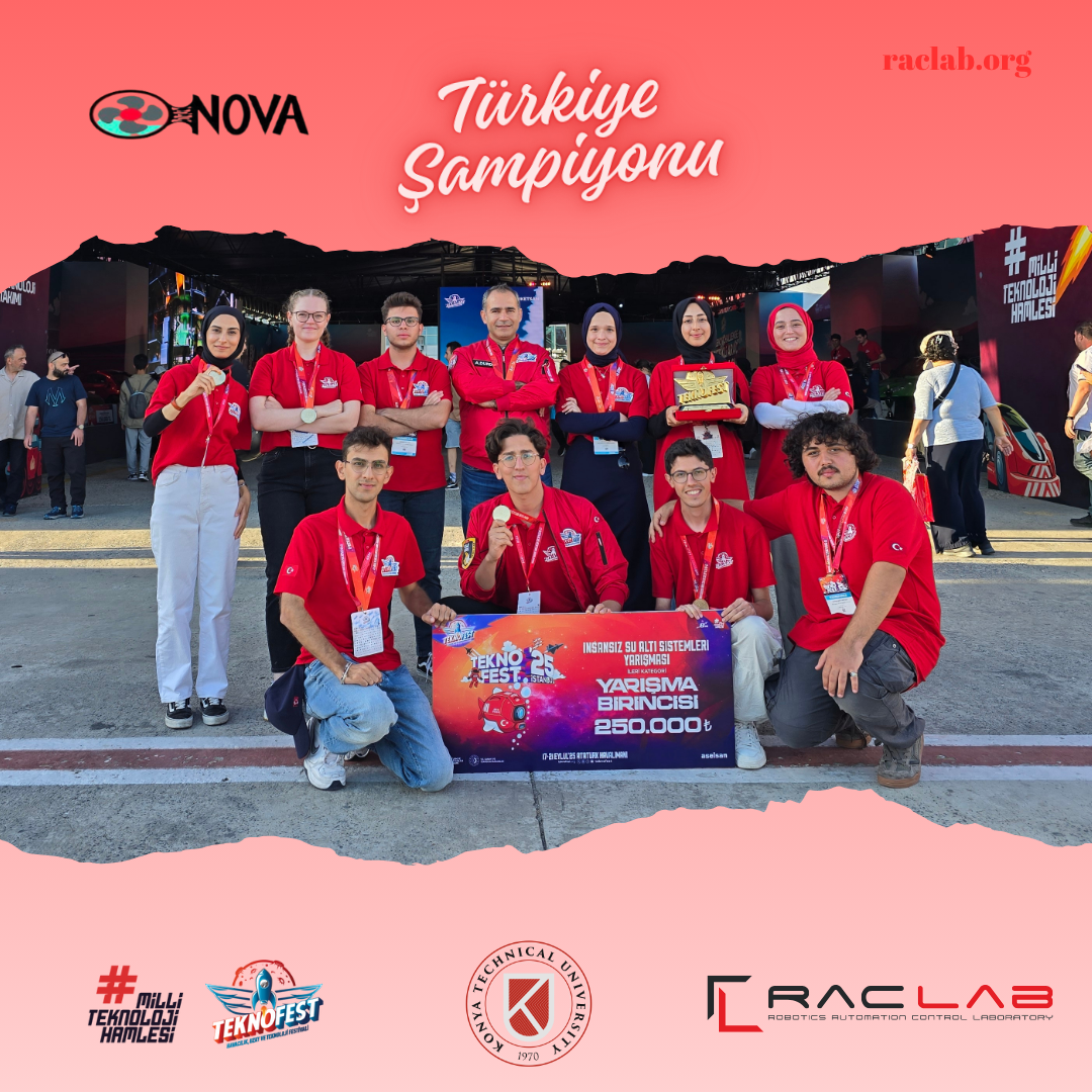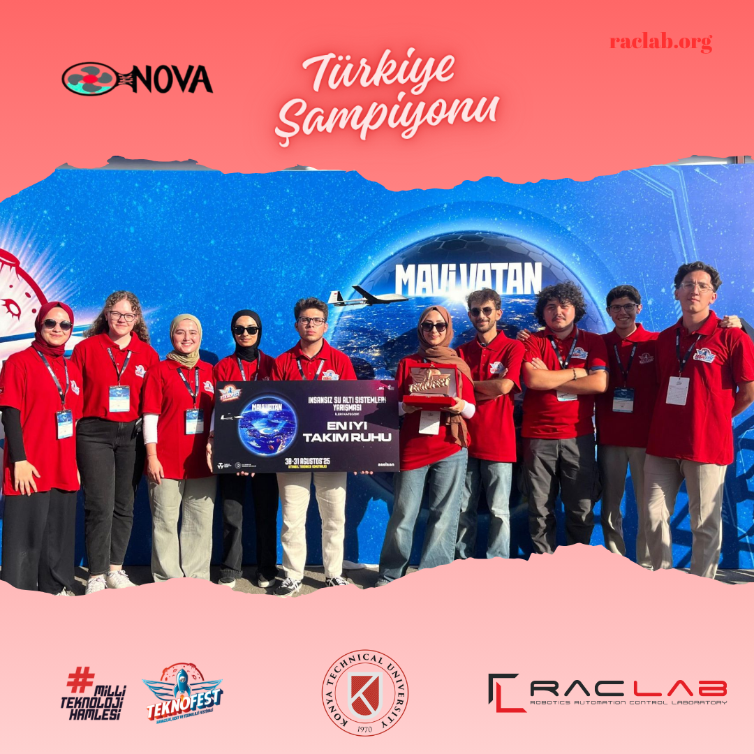 At TEKNOFEST 2025 Unmanned Underwater Systems Competition, our team RACLAB NOVA (Hatice Kübra İLHAN (Team Captain), Abdurrahman İnce, Beyza Nur YAĞCI, Feyza İnal, Furkan ERANIL, Gizem Ülker, Mevlüt Burak Dağlı, Mustafa Bedir Sarıtosun, Feyza Baltürk, and Ahmet Selim İlhan) reached the top of the podium! 🏆 On top of that, we were also honored with the “Best Team Spirit” award! 💪