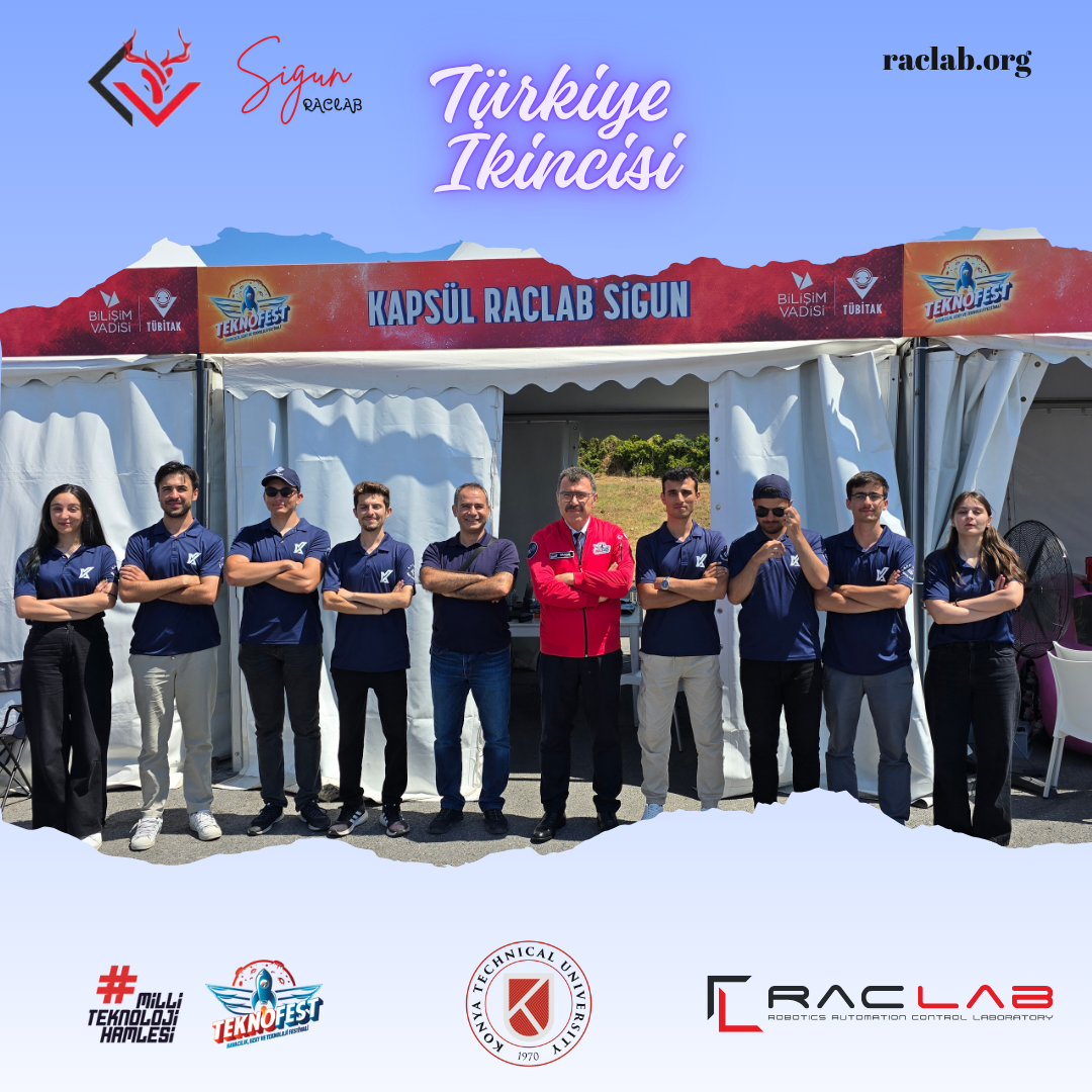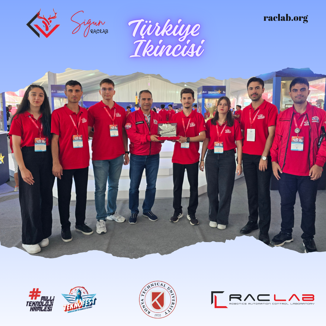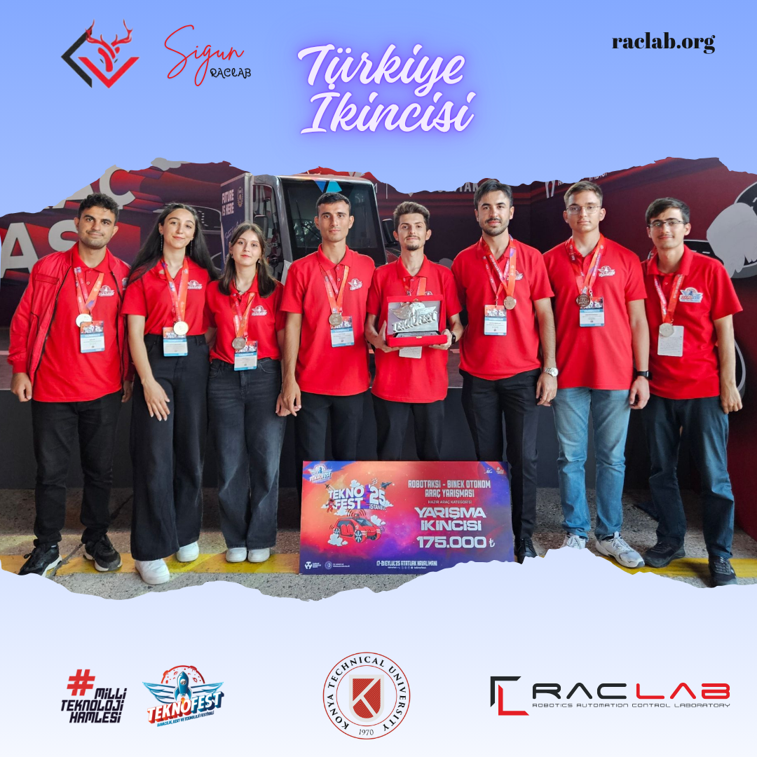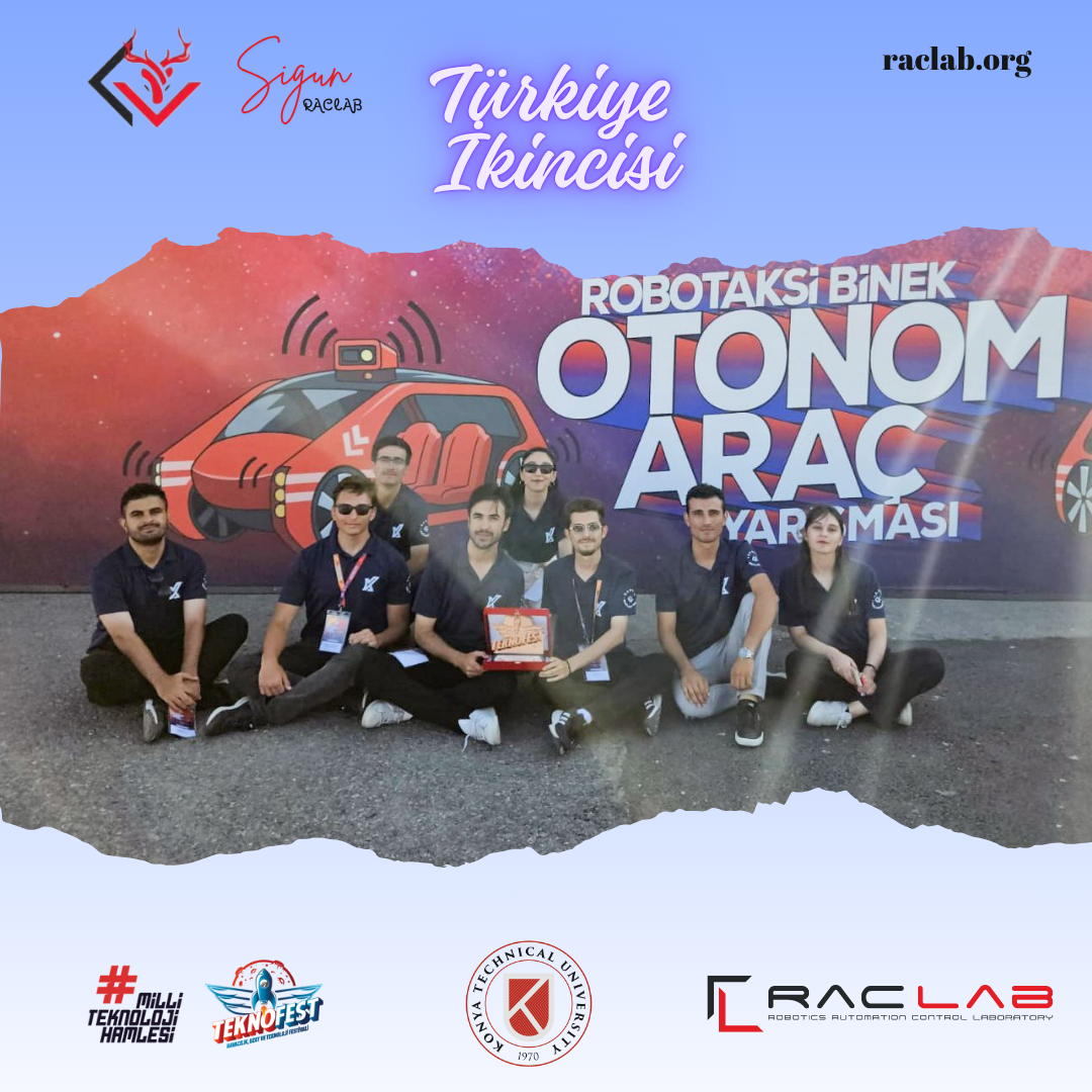 At TEKNOFEST 2025 Robotaxi Passenger Autonomous Vehicle Competition, our team RACLAB SIGUN (Burak Özsoy (Team Captain), Bahtiyar Erener Kurt, Hasan Altuğ, Osman Melih Kocaoğlu, Recep Mahmut Gündüz, Şevval Eymen Nergiz, Fatmanur Çınar, and Enes Kurt) achieved Second Place in Türkiye and was also awarded the “Most Original Software” prize at the competitions held in Bilişim Vadisi! 💪🚗